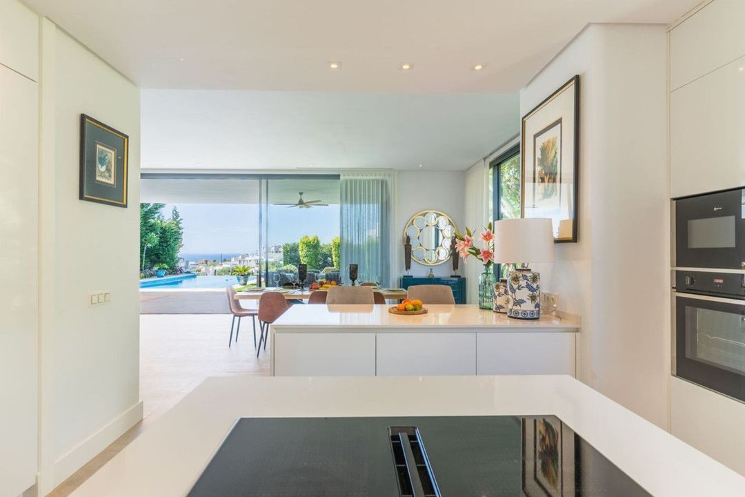 This exceptional luxury villa is situated in the prestigious area of Cabopino, Marbella East, offering a prime front line golf location with captivating views of both the sea and lush fairways. Designed to the highest standards, the property spans a generous built area of 635m², with 539m² of refined interior space, complemented by a spacious 135m² terrace and set on a 774m² private plot. The villa is presented in excellent condition and is fully furnished, ready for immediate occupation.