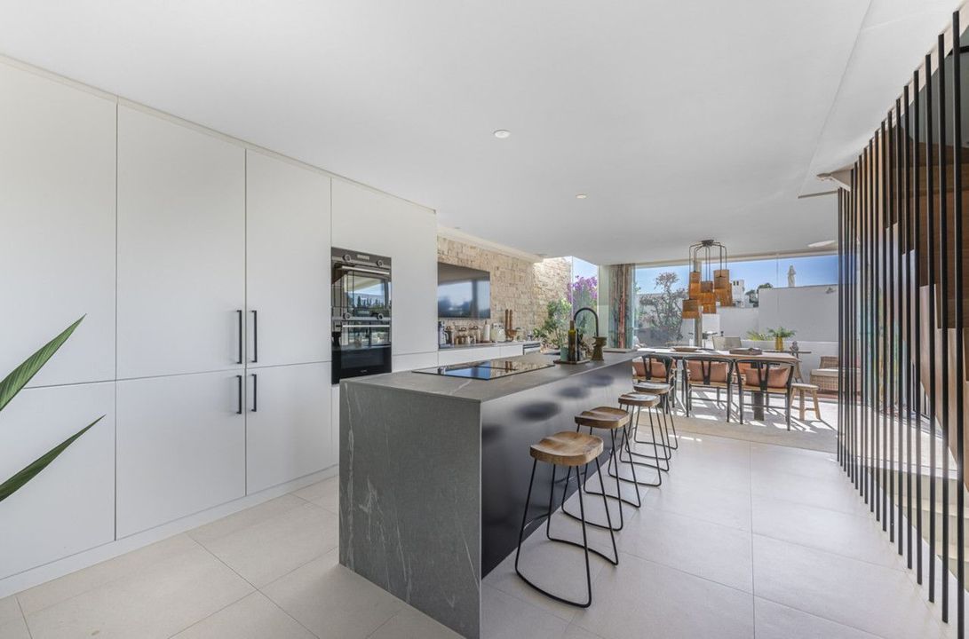 De woning verkeert in uitstekende staat en beschikt over maar liefst 250 m² woonoppervlak, met een verfijnd en eigentijds design, gekenmerkt door comfort, natuurlijk licht en royale indelingen. De ruime woonkamer biedt een open keuken en eetgedeelte dat naadloos aansluit op het buitenterras en het privézwembad. Perfect om te ontspannen, gasten te ontvangen en het hele jaar door te genieten van het zonnige klimaat van Marbella.