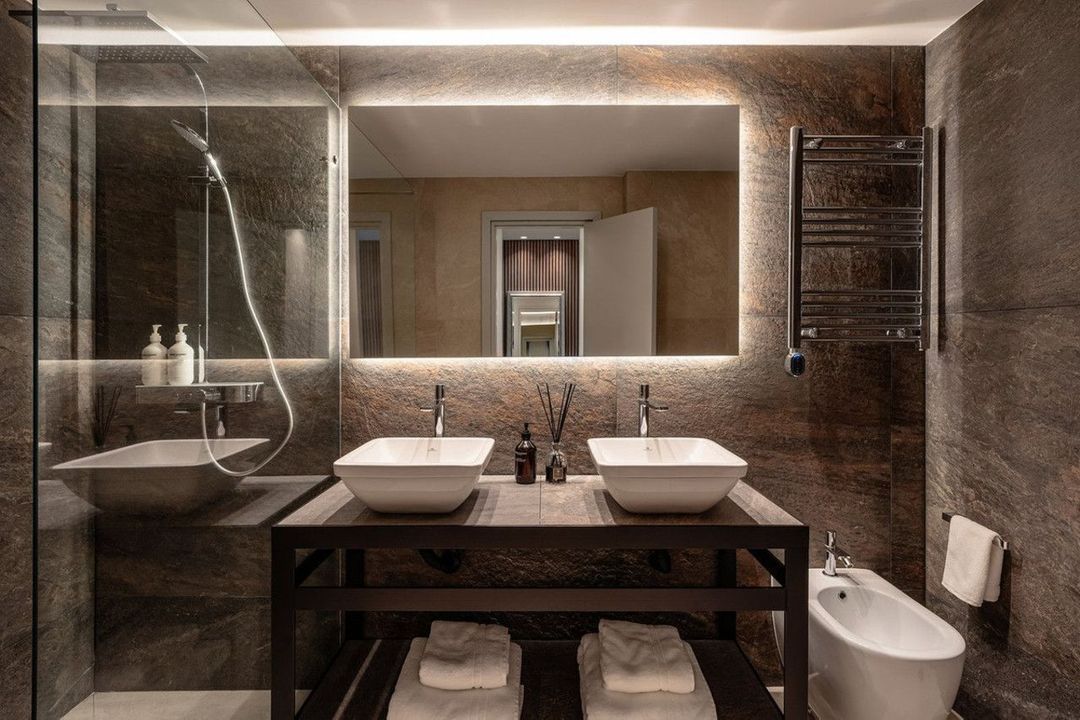 The property features six generously sized bedrooms, each with an en-suite bathroom, offering comfort and privacy for residents and guests. The master suite is envisioned as a true private retreat, with a walk-in closet and a spa-inspired bathroom that includes a sauna, steam room, and hydrotherapy bathtub.