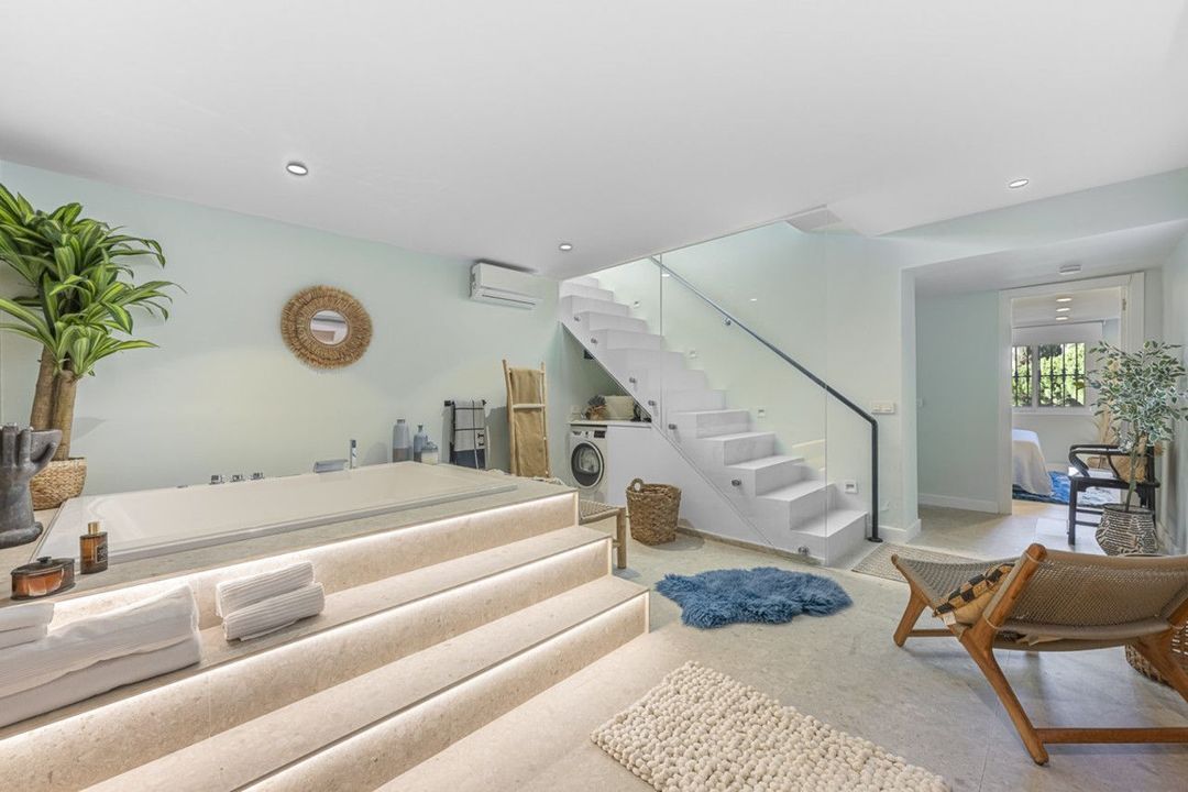 De woning verkeert in uitstekende staat en beschikt over maar liefst 250 m² woonoppervlak, met een verfijnd en eigentijds design, gekenmerkt door comfort, natuurlijk licht en royale indelingen. De ruime woonkamer biedt een open keuken en eetgedeelte dat naadloos aansluit op het buitenterras en het privézwembad. Perfect om te ontspannen, gasten te ontvangen en het hele jaar door te genieten van het zonnige klimaat van Marbella.