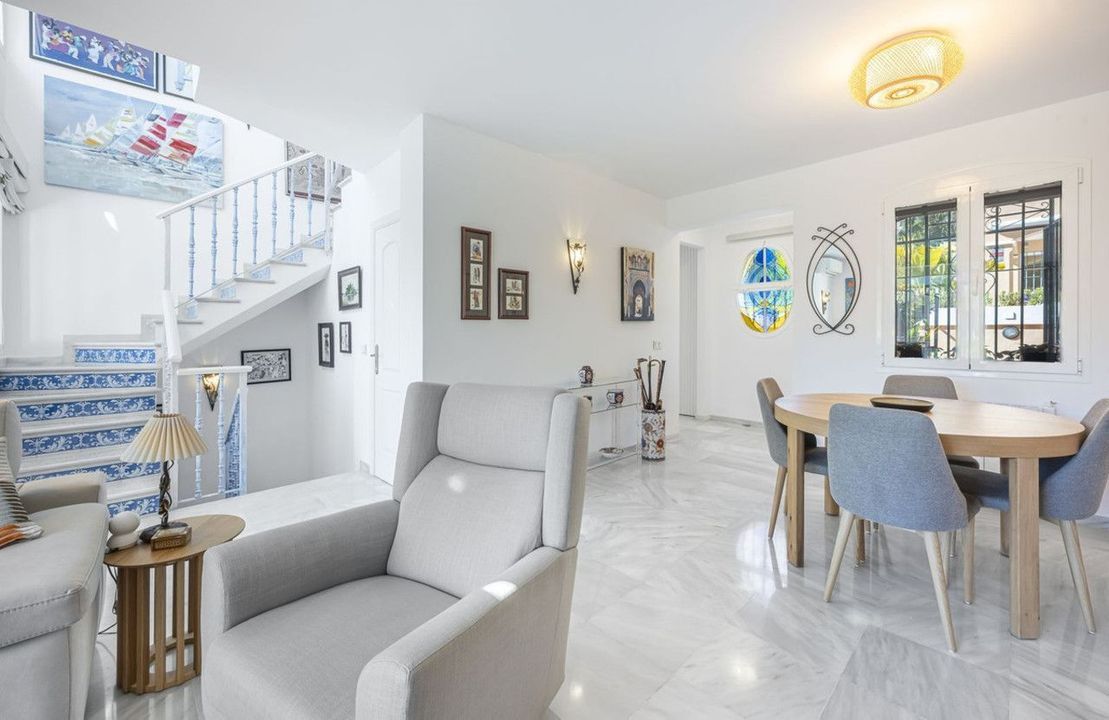 Magnificent townhouse for sale in the exclusive area of El Capricho, Marbella, located in a მშვიდ and secure gated community, ideal for those seeking comfort, privacy, and an excellent location close to the sea.