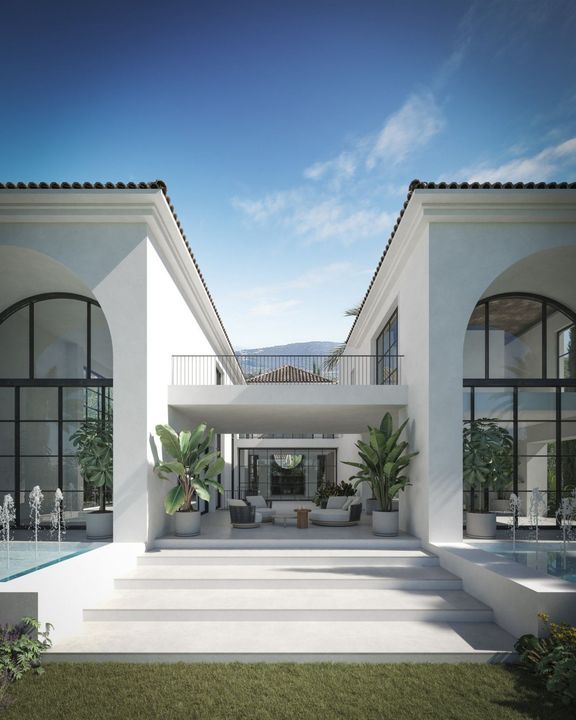 Villa Los Arcos is about structure. The architecture is already resolved: symmetry, proportion, and those repeated arches that give the house its identity without overstatement. The entrance draws you straight through the property, aligning interior and garden in one uninterrupted axis. It's deliberate and it works.