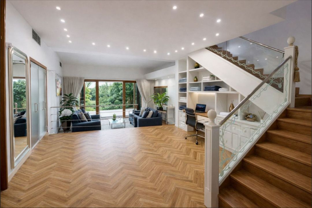 The existing residence offers a total built area of 703m², plus an impressive 483m² of terraces and porches, creating a home designed for both relaxed family living and high-level entertaining. From the moment of arrival, there is a clear sense of scale. Grand reception areas, a double-height living room, separate dining room, generous sitting spaces, and seamless access to the outdoor entertaining zones create the kind of flow that works beautifully for Marbella's indoor-outdoor lifestyle.