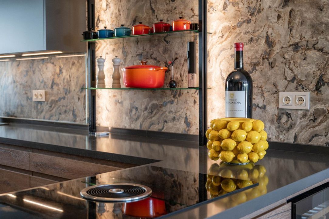 The property has been completely renovated to a high standard and offers a thoughtful layout across one level. Upon entering, you are welcomed by a spacious hallway. To the right, there is a large utility and laundry room with excellent storage. To the left, a beautifully designed Scandinavian-style kitchen features a central island with integrated cooking area, allowing you to enjoy the views while entertaining guests.