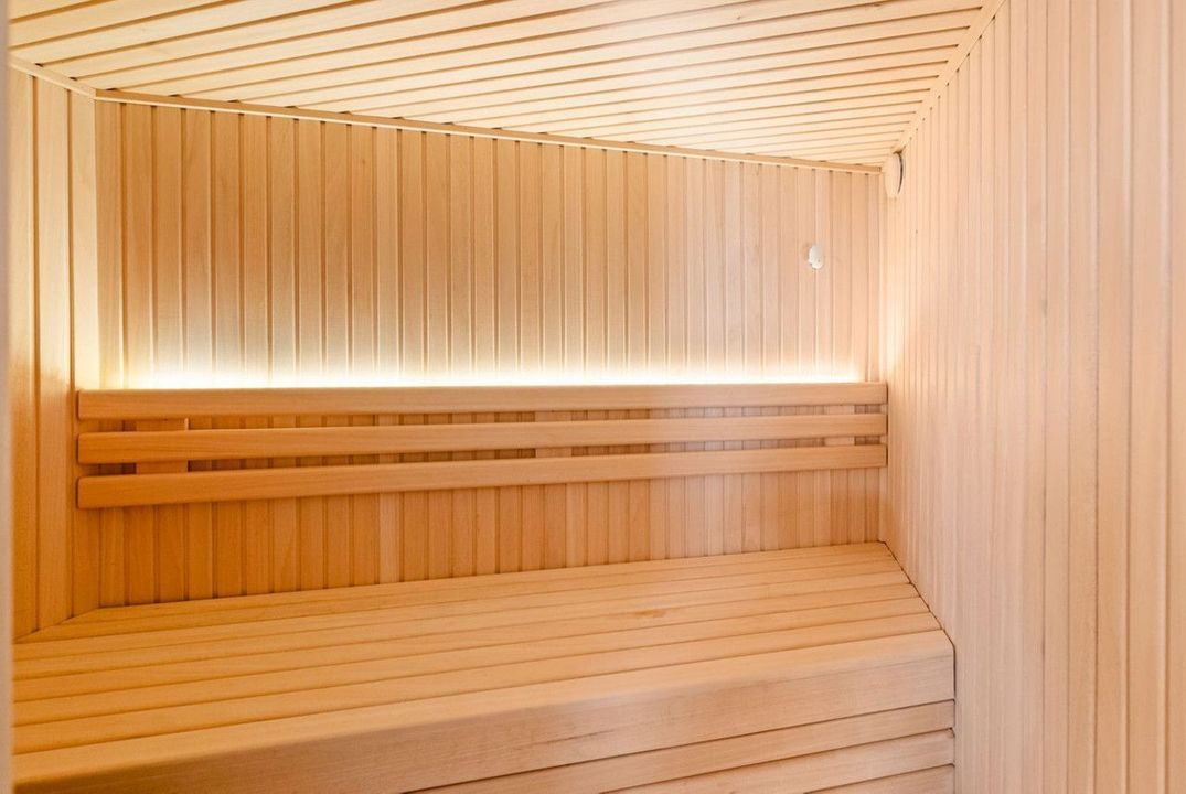 • De hele bovenste verdieping is gewijd aan de master suite, met een eigen terras, directe toegang tot de fitnessruimte met Technogym-apparatuur en sauna
