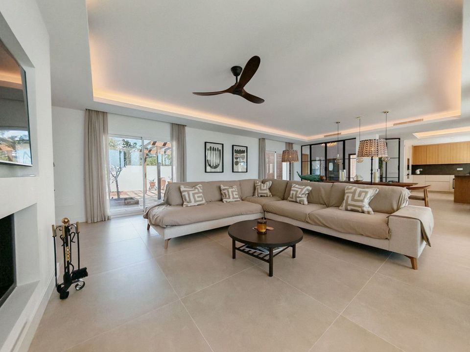 Villa te koop in Elviria, Marbella met 4 slaapkamers, 4 badkamers, 4 een eigen badkamer, 1 toilet en met oriëntatie zuid, met prive zwembad, privé garage en privé tuin. Over eigendom afmetingen heeft 327 m² bebouwd en 1.519 m² plot. Over de volgende faciliteiten dicht bij voorzieningen, vervoer dichtbij, airconditioning, centrale verwarming, inbouwkeuken, bijkeuken, open haard, fitnessruimte, alarm, gastentoilet, privé terras, complete keuken, uitzicht over land, uitzicht op de bergen, verwarmd zwembad, automatisch irrigatiesysteem, domoticasysteem, wasruimte, internet - wi-fi, inbouwkasten, uitzicht op de tuin, bij de zee/het strand, glazen deuren, uitstekende staat, onlangs gerenoveerd, dicht bij winkels, dicht bij de stad, dicht bij scholen, bewakingscamera's, kantoor en gedeeltelijk uitzicht op zee.