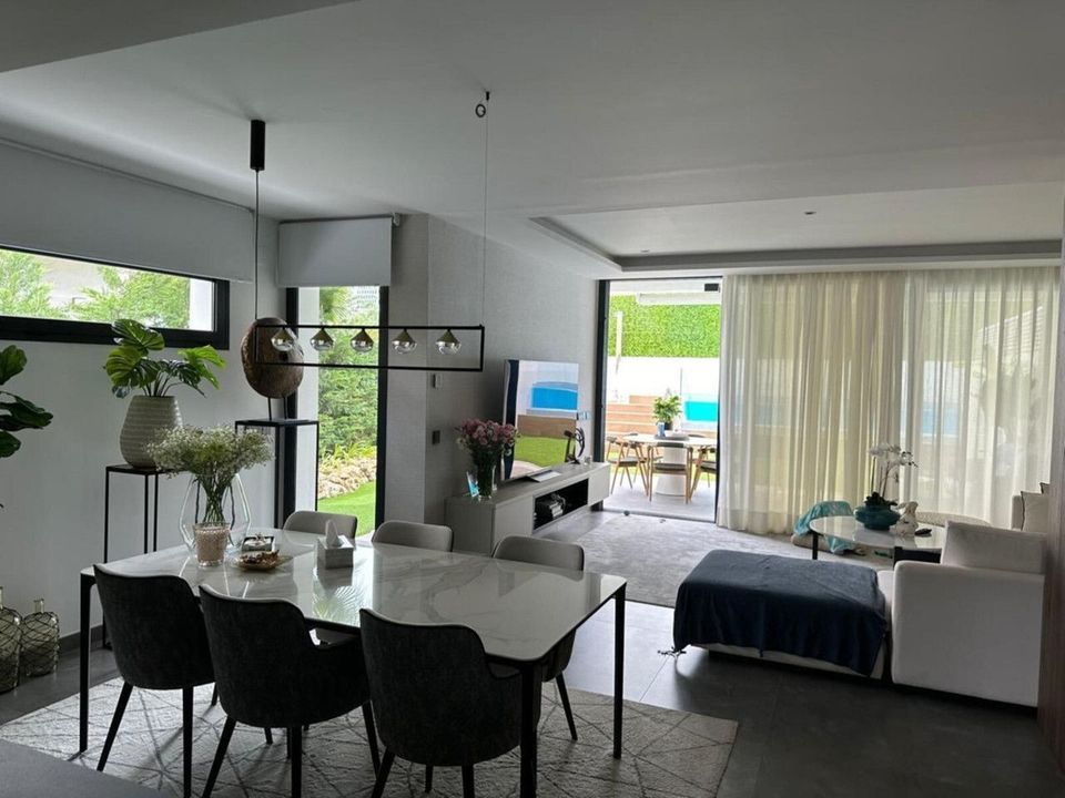 This stylish semi-detached villa is located in an exclusive gated community just a short walk from the beach and only minutes away from Puerto Banús.