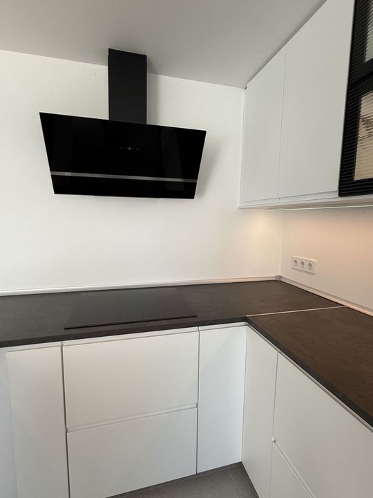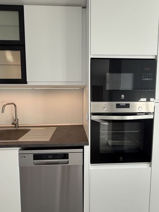 The heart of the home is its contemporary kitchen, designed with both functionality and style in mind. It features a convenient breakfast bar and is fully equipped with state-of-the-art appliances, making it perfect for everything from quick morning coffees to entertaining guests.