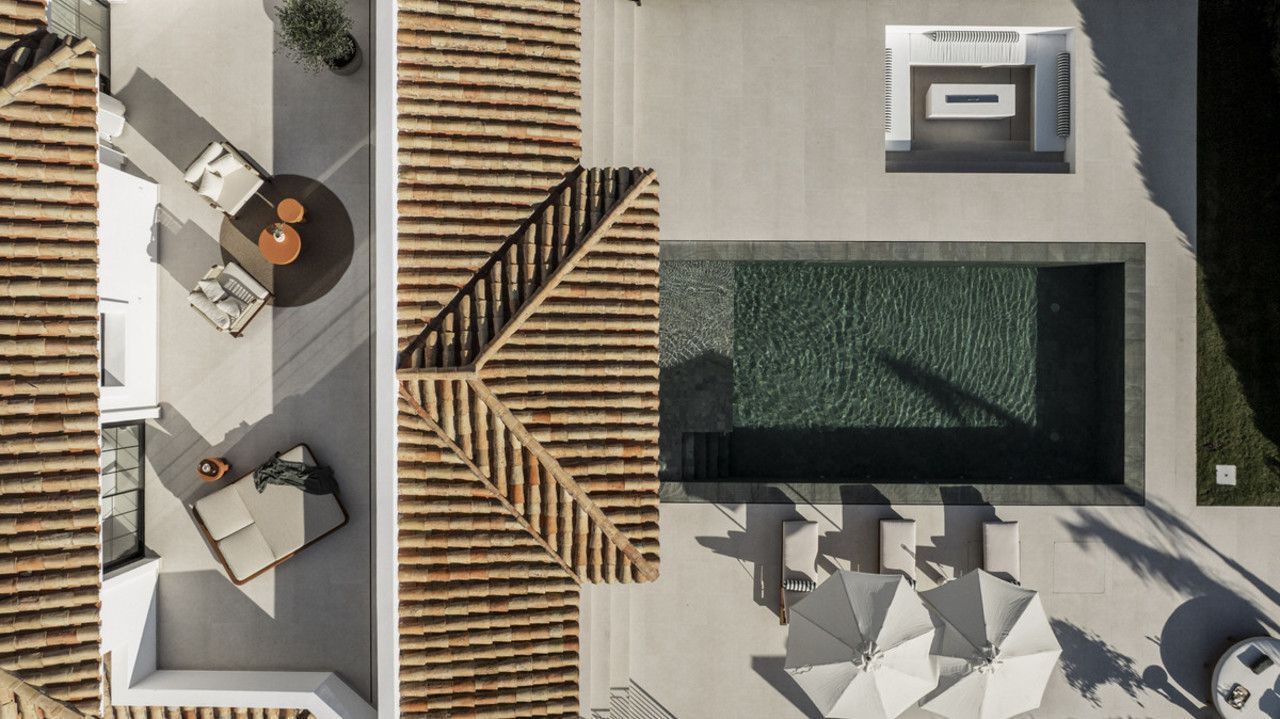 Inside, the home is defined by an elegant selection of materials, including Chevron wooden flooring that brings warmth and sophistication to every space. The Danespan kitchen combines clean design with functionality, creating a welcoming focal point for daily living and entertaining. The villa offers five spacious bedrooms, thoughtfully distributed to ensure comfort for family and guests. The wellness area features an indoor pool, sauna, and steam room, creating a private spa experience within the home.