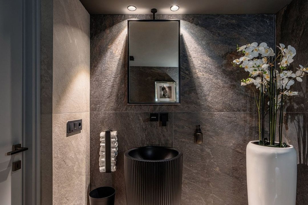 The property features six generously sized bedrooms, each with an en-suite bathroom, offering comfort and privacy for residents and guests. The master suite is envisioned as a true private retreat, with a walk-in closet and a spa-inspired bathroom that includes a sauna, steam room, and hydrotherapy bathtub.
