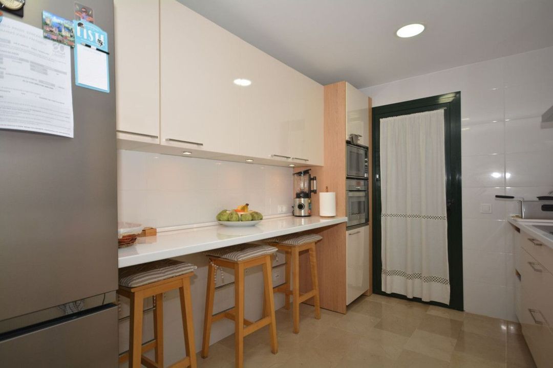 Dit prachtige appartement, gelegen in het hart van het centrum van San Pedro, combineert comfort, stijl en een onovertroffen locatie. Het is in perfecte staat en direct te betrekken. Het biedt een ruime woonkamer met toegang tot een groot terras, ideaal voor gezellige bijeenkomsten in de buitenlucht. De aparte, recent gerenoveerde en volledig ingerichte keuken is voorzien van een wasruimte. De hoofdslaapkamer is ruim en beschikt over een eigen badkamer en grote inbouwkasten met gedeeltelijk uitzicht op de stad en de zee. Daarnaast zijn er nog twee ruime slaapkamers, beide met inbouwkasten, die een gedeelde badkamer hebben. De woning is voorzien van airconditioning met warmtepomp, een eigen ondergrondse parkeerplaats en een berging. De gemeenschap biedt een gemeenschappelijk zwembad, fraai aangelegde tuinen en een speeltuin, waardoor een ideale omgeving voor het hele gezin ontstaat.