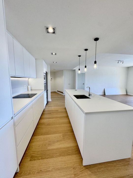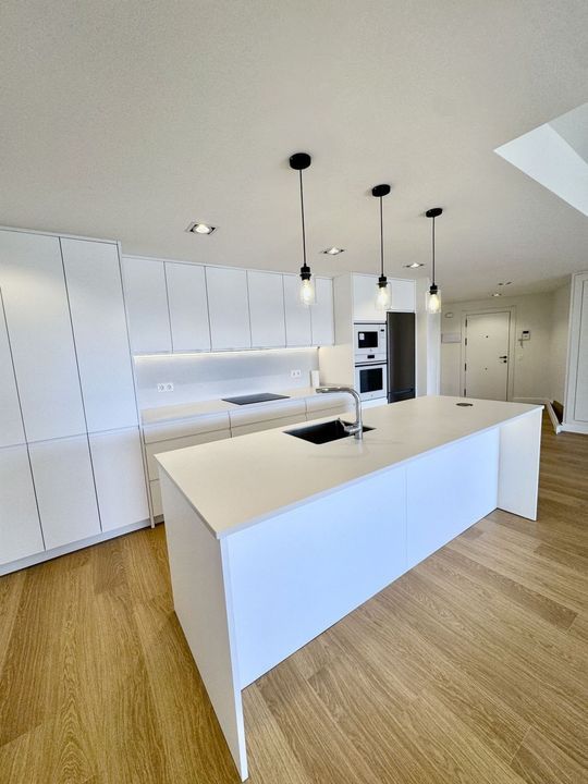 A beautiful, newly renovated flat built to the highest standards, situated on the fifth floor, with sea views from both terraces. It features electric shutters and new hot/cold air conditioning, wooden flooring, and a fully renovated open-plan kitchen leading into the spacious living room. It also comprises 3 bedrooms, two spacious en-suite bathrooms with showers, and a separate toilet. The property is sold with a spacious garage space located in the basement, accessible via the lift. The development features a communal swimming pool.