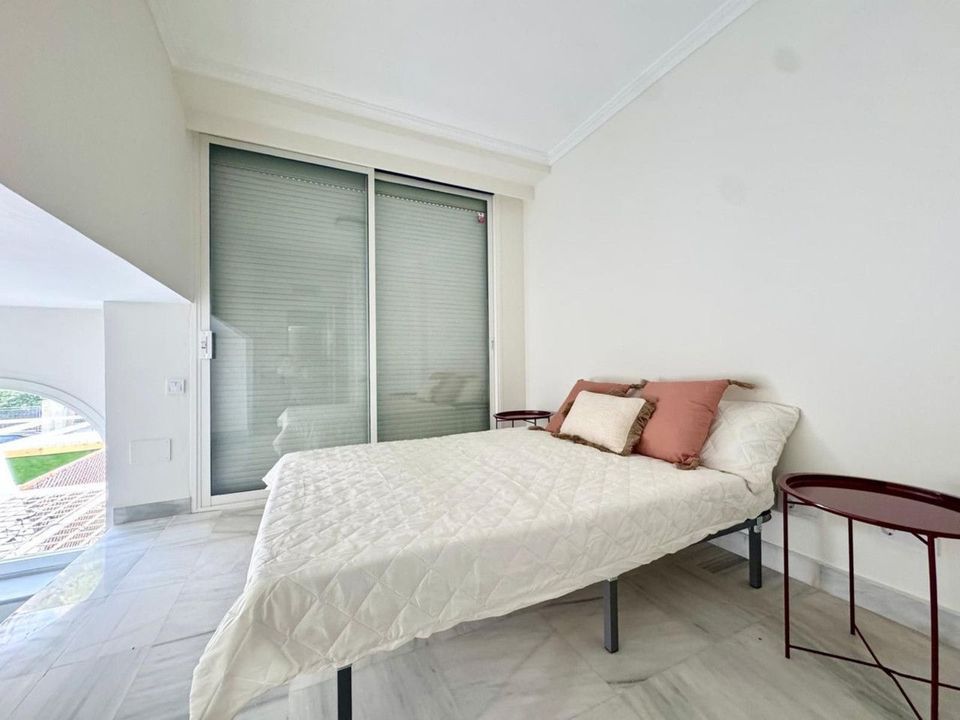 From the main area, you access a private enclosed patio with direct access to the street, which leads to the Marbella seafront promenade . Located in a well-established and central community, the complex offers landscaped gardens, swimming pools, a gym, and a squash court, providing comfort and quality of life.