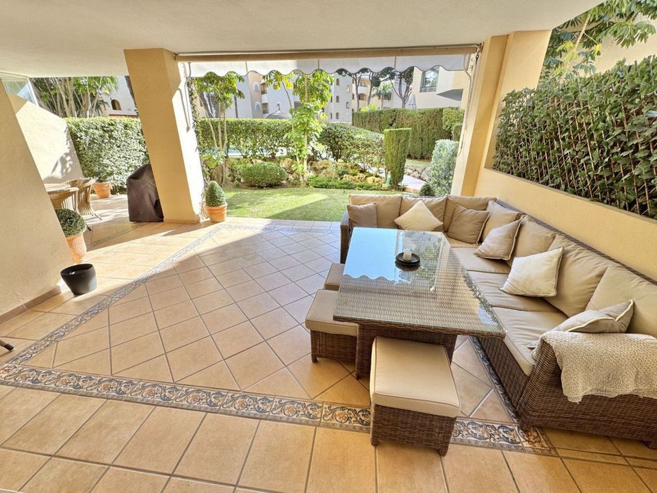 AANBIEDING - Elviria Beachside (exclusieve nieuwe aanbieding) - Prachtig luxe appartement met 2 slaapkamers, 2 badkamers, een groot privéterras op het zuiden en een tuin, op slechts 5 minuten lopen van het strand. Dit appartement biedt de ultieme mediterrane levensstijl in het prestigieuze Hacienda Playa complex.
