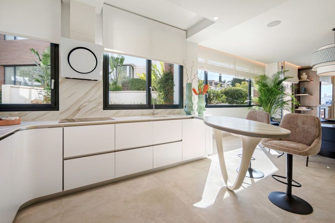 Atlas is een duplex appartement op de begane grond in Reserva de Sierra Blanca, met vier slaapkamers, vier badkamers en een gastentoilet, verdeeld over een discrete entertainmentverdieping beneden en een rustige hoofdwoonverdieping boven. Het interieur is ontworpen door Pedro Peña, maatwerk timmerwerk door Vaneva, technische installaties door Proinsermant, klimaatsystemen door Technoclima, en een privéterras met uitzicht op de tuin en het zwembad, plus twee interne parkeerplaatsen.