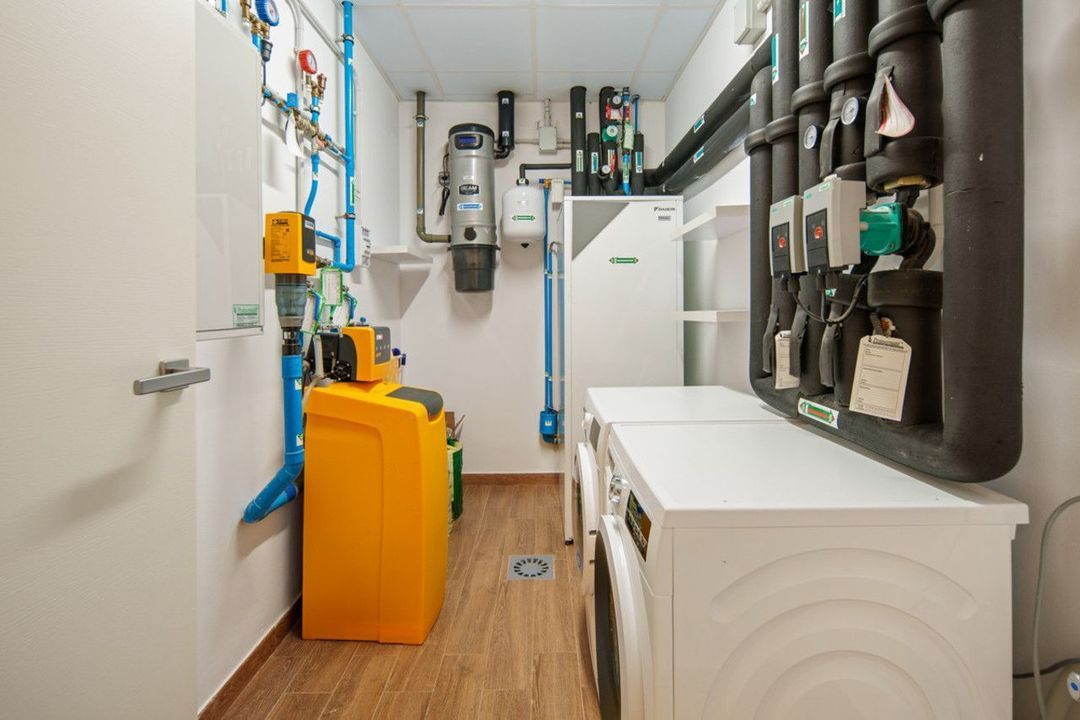 Deze woning is met intentie samengesteld, niet met overdaad. Het lagere niveau absorbeert activiteit: een biljart- en mediaruimte, een volwaardig thuiskantoor, een gastensuite en directe toegang tot de privégarage, waardoor de hoofdverdieping rustig en sereen blijft. Boven bevinden zich drie slaapkamers met eigen badkamer, waaronder de master suite, naast een open keuken, eet- en woonkamer die uitkomt op het terras en de aangelegde tuin. De gebruikte materialen zijn tastbaar en duurzaam: natuurmarmer, houten vloeren, op maat gemaakt timmerwerk, Villeroy & Boch sanitair. Technologie is geïntegreerd en niet opzichtig: een audiosysteem voor het hele huis, Technoclima klimaatregeling, vloerverwarming in het hele appartement en een beveiligingsconcept ontwikkeld door Marbejer, ondersteund door perimeter thermische beeldvorming en gezichtsherkenning van de Duitse fabrikant Mobotix. Het resultaat is een woning die functioneert met de zekerheid van een privéresidentie in plaats van een geënsceneerd pronkstuk.