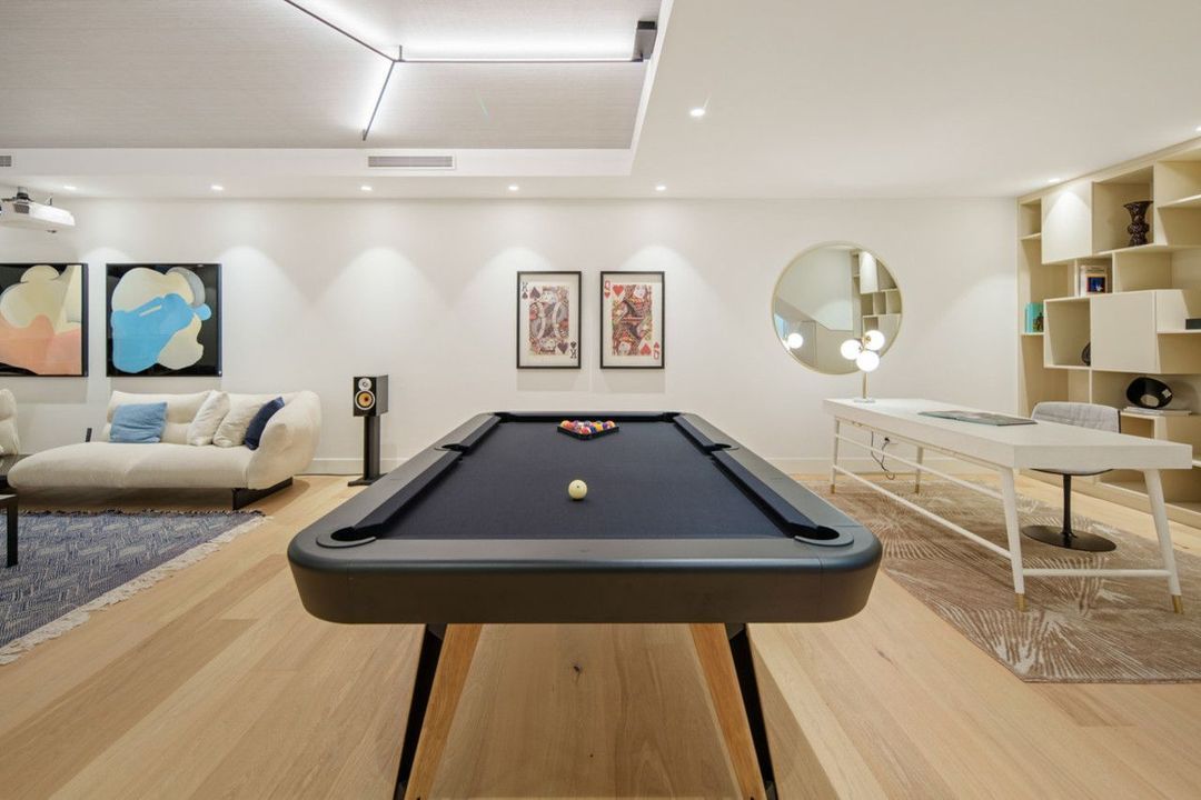 Het interieurpalet is doordacht en opvallend zelfverzekerd: diep bordeauxrood, marineblauw, zachte blauwtinten en warme natuurlijke kleuren, gelaagd door designmeubilair en zorgvuldig geselecteerde kunstwerken als onderdeel van Pedro Peña's ontwerp. Niets voelt tijdelijk aan. Opbergruimte is goed doordacht, de circulatie is logisch en de verhoudingen zijn afgestemd op dagelijks wonen in plaats van spektakel. Zelfs de overgang van garage naar woning is naadloos: arriveer, sluit de deur en de buitenwereld verdwijnt geruisloos. Het roept een stille vraag op: moet een luxe woning indruk maken op bezoekers, of ervoor zorgen dat de eigenaar niet meer weg wil?