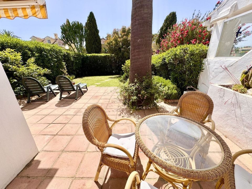 Wonderful property in a prime location! Walking distance to everything you can think of: 5mn walk to Aloha Gardens (restaurants, supermarkets, shops, nightlife..), 10mn walk to Aloha Pueblo, and 20mn walk to Aloha Golf Club. As you enter, your senses awaken to the spacious garden full of life and energy. It is meticulously taken care of, offering a terrace and chill out area, and an extensive grass outside space full of fruit trees (avocado, lemon, to name a few). The south-west orientation allows bright light coming in, and sun exposure. The inside has been nearly entirely renovated, and the layout is nicely done, between living and sleeping areas. It includes a living and dining room, open plan kitchen with all appliances, two large bedrooms, two full bathrooms, laundry and storage room. There is an extra garden in the back of the property, that leads to the lovely communal areas: big swimming pool, and landscaped gardens. There is a covered parking. Exquisite property, easy viewings, must see!