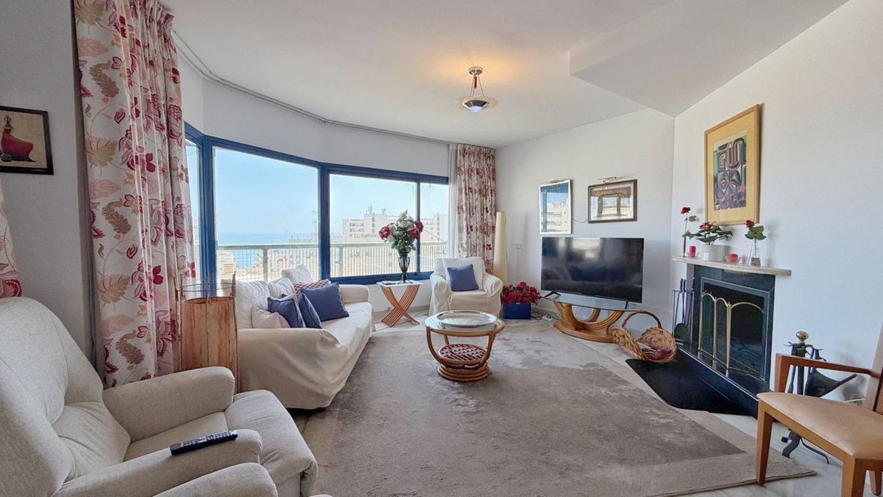 An elegant and spacious living-dining room faces south, with large windows that allow plenty of natural light and beautiful unobstructed views over the city and the sea in the background.