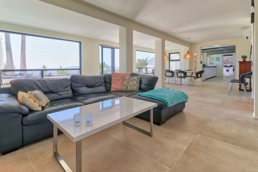 Imagine enjoying panoramic sea views from your private garden, where you'll also find a refreshing pool perfect for sunny days. With a 1,000 m² plot, you'll have ample space to relax and enjoy nature. Additionally, the villa includes a garage, built-in wardrobes, and services such as internet, alarm, and gardener in the price.