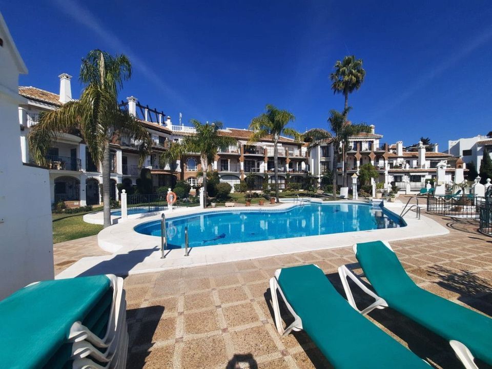 Beautiful 2-bedroom south-facing townhouse located in the exclusive Puebla Aida urbanisation, an iconic Andalusian-style development in Mijas Golf. Impeccably maintained, the community offers four communal swimming pools and is renowned for its charming corners, picturesque alleys, squares, and fountains throughout the complex.