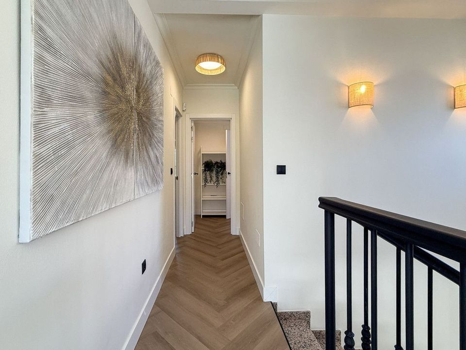 Op de begane grond ligt een royale open living met open haard, cinema wall, eetgedeelte en een nieuwe keuken die direct aansluit op een patio én de garage. Vanuit de woonkamer kijk je uit op de tuin en het zwembad, waar een fijne schaduwplek met zonneschermen is gecreëerd voor de warme zomerdagen.