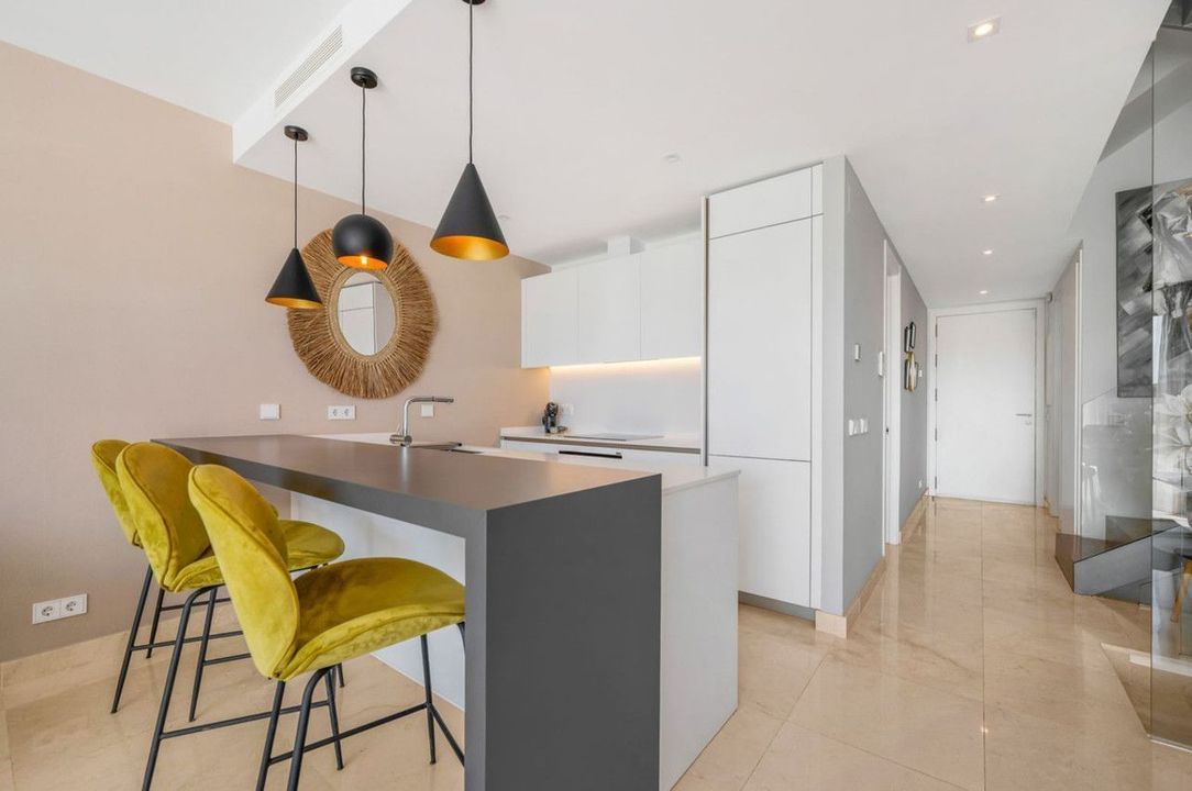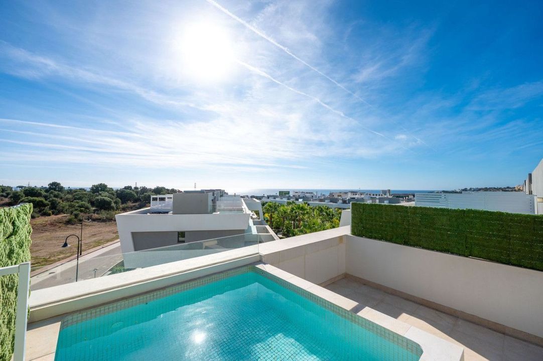 Ontdek dit uitzonderlijke herenhuis in het prestigieuze project La Valvega in Mijas Costa, op een steenworp afstand van tennisbanen. Deze moderne woning uit 2019 combineert naadloos doordachte architectuur met luxueus mediterraan wonen.