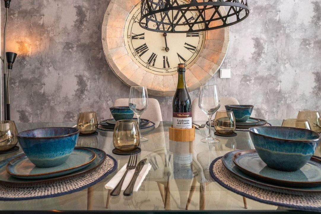 spectaculaire open woonkamer en keuken, gastenslaapkamer en elegante wc, die uitkomt op een