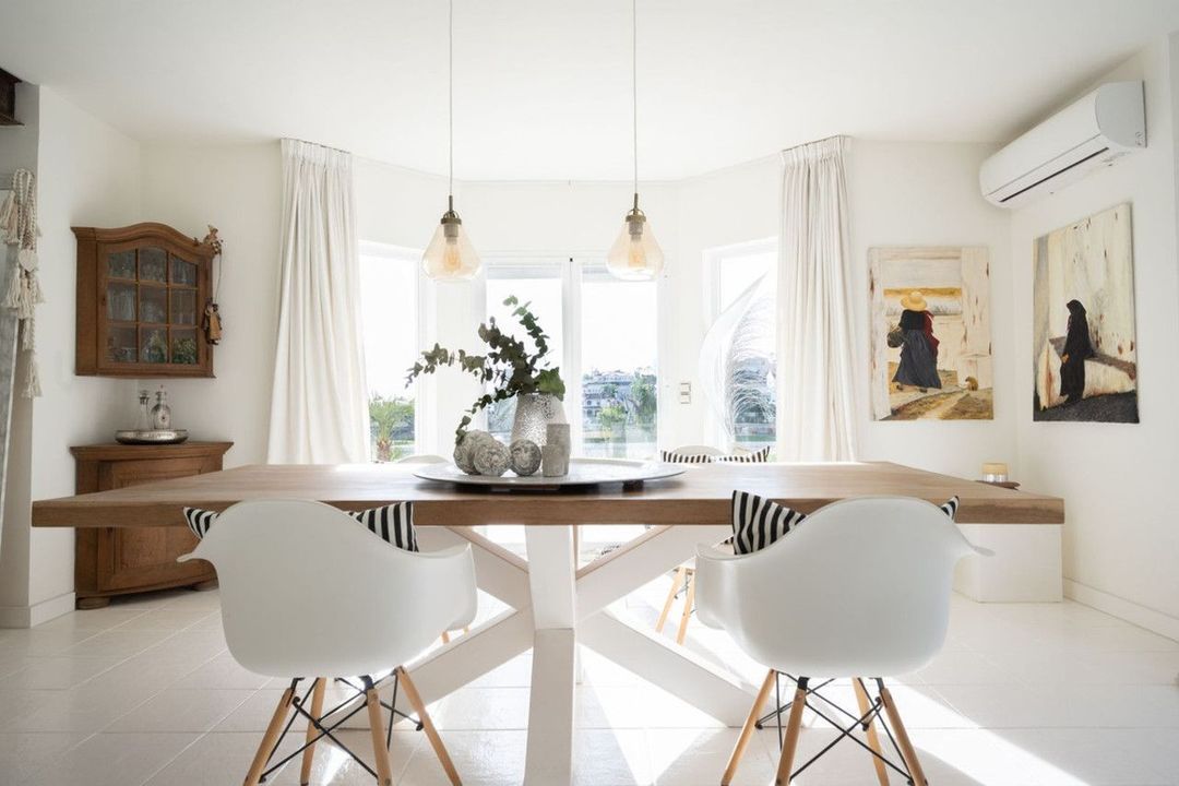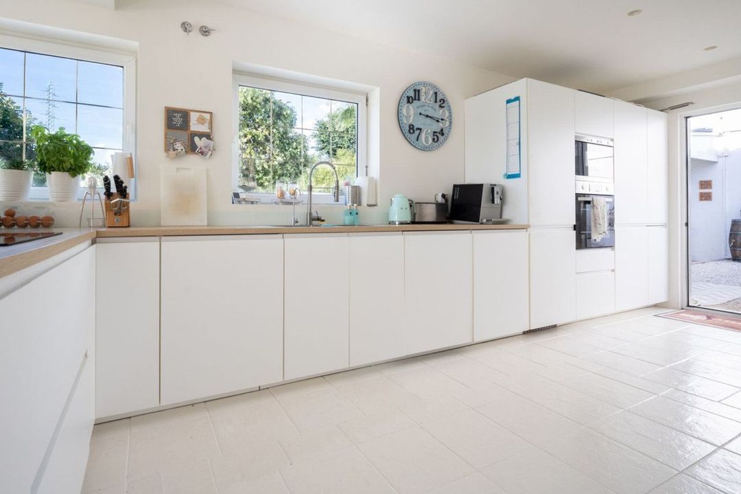 Ruime open woon-/eetkamer met moderne open keuken – licht en perfect voor het gezinsleven of om gasten te ontvangen.