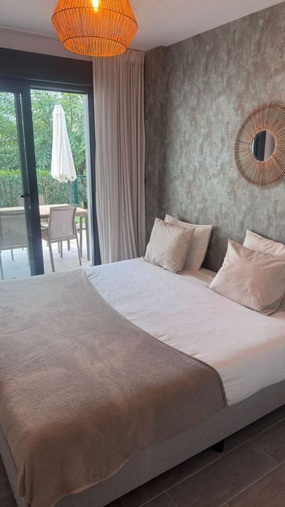 De tweede slaapkamer heeft ook gelijk toegang tot de tuin. Een fijne slaapkamer, ook met inbouwkasten. Een tweede badkamer maakt het geheel tot een mooi, ruim, en compleet