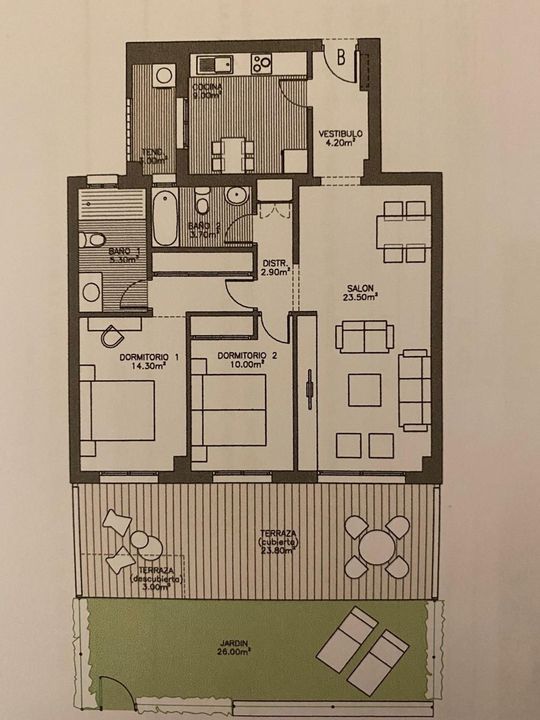 De community heeft een prachtige binnen tuin met een groot zwembad.
