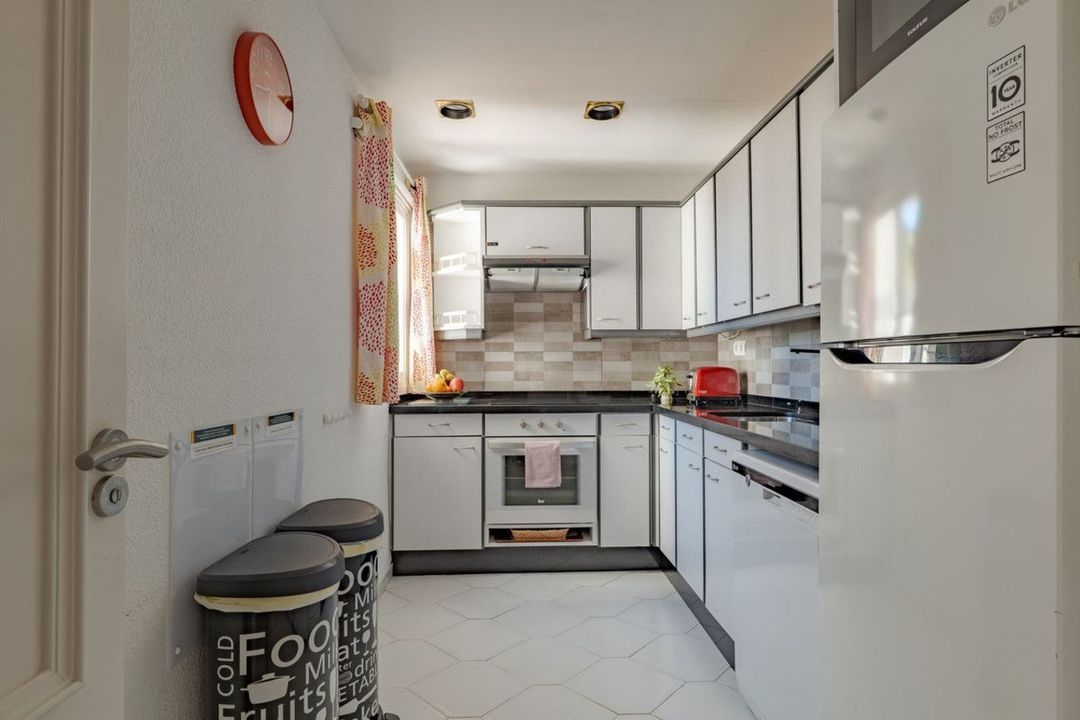 Dankzij airconditioning, glasvezelinternet en Chromecast biedt dit appartement alles voor comfortabel permanent wonen of een zorgeloze vakantiewoning. Parkeren kan prima bij de ingang van het complex, er is genoeg plaats alles binnen de overkoepelende Miraflores urbanisatie. Er zijn ook overkapte parkeerplaatsen beschikbaar. Indien je een afgesloten parkeerplek wenst zijn er garage plaatsen te koop op 4 minuten rijden.