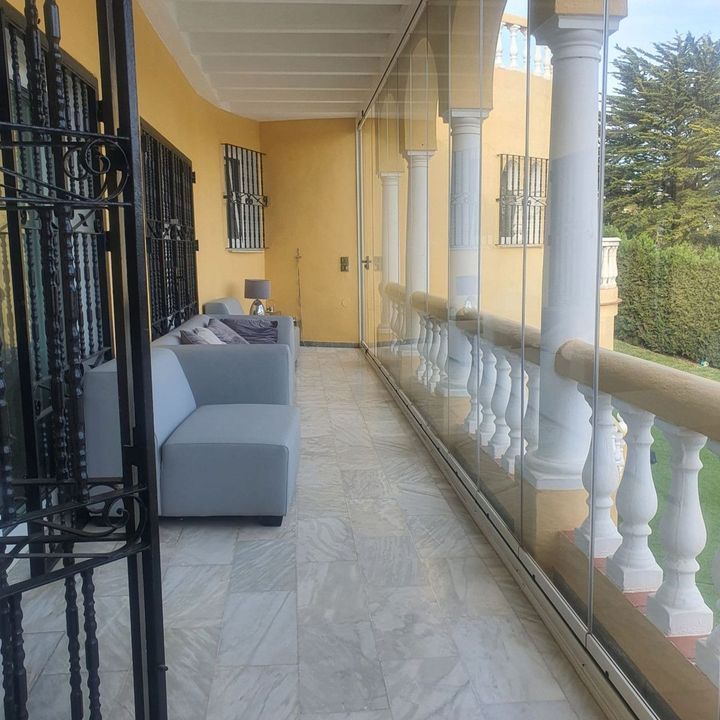 Fantastic returns from this large Villa which has a tourist license and a successful holiday rental business. Own a spacious six bedroom villa in a sought after urbanization close to beaches, a children's play area and shops and restaurants of Playa Marina. It features a large swimming pool, ample outdoor spaces with a well-established garden and low maintenance artificial grass. The main living area opens onto a covered terrace with glass curtains for year-round enjoyment and views of the pool. Inside, there are two open kitchen areas and a large roof terrace to enjoy the sun all day long.