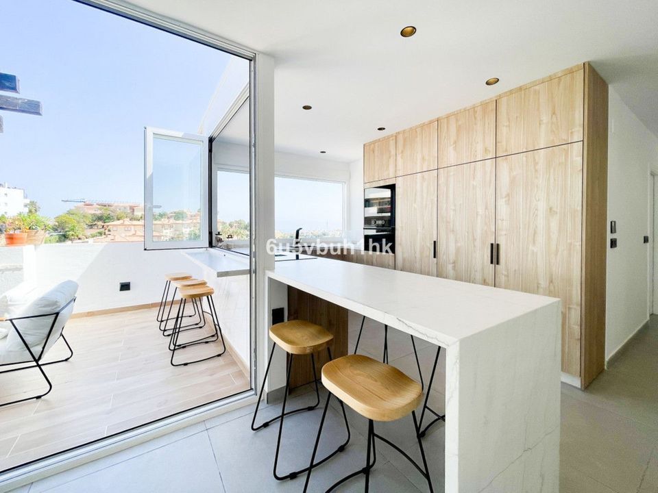 Welcome to discover this exclusive penthouse, completely renovated and tastefully decorated. This bright and spacious apartment features three large bedrooms and two bathrooms, all of the bathrooms are equipped with underfloor heating. The master bedroom has a spacious walk-in closet and an en-suite bathroom with a Finnish sauna, from which you can enjoy stunning sea views. Additionally, the master bedroom has direct access to a terrace with sea views.