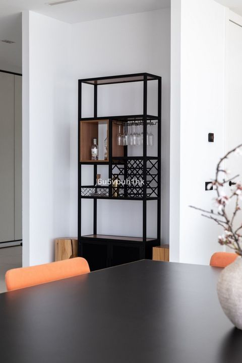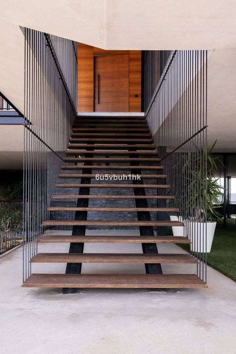 The villa boasts a total built area of 916m², providing an great deal of space both indoor and outdoor. The interior of the property is meticulously designed with high-quality finishes and attention to detail. The open-plan layout of the living areas creates a seamless flow between the kitchen, dining area, and lounge, perfect for entertaining guests. The gym, cinema room and service areas are located on the lower level as well as the outside exterior foyer. Entering the center of the house via the large wooden staircase, you will immediately feel the grand atmosphere. In the living room theres is plenty of space for a lot of cozy evenings in the custom made sofa in front of the big fireplace. Every piece of furniture, light and art is carefully chosen to create a warm feeling from the honey tones of oak, to the big sliding glass doors that at the same time gives you the feeling of indulging in the nature.