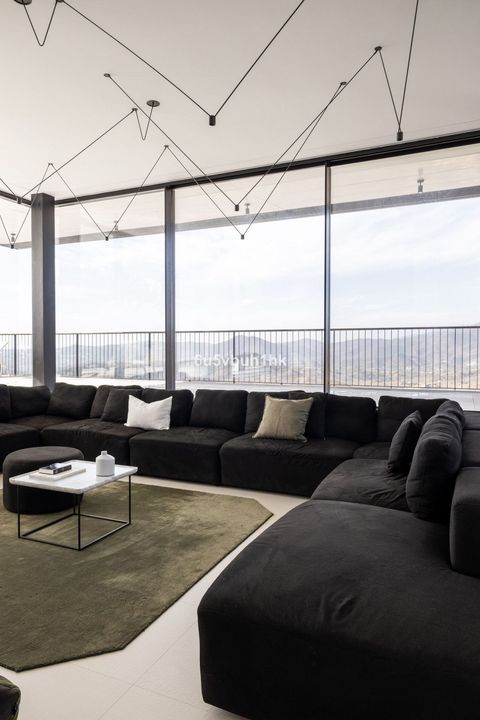 The house integrates with its environment, not only in relation to the design and amazing views, but also in terms of energy efficiency and sustainability. Natural protection against heat is provided by generous cross ventilation throughout the house. Sun penetration is prevented by large vertical and horizontal shading elements in front of the windows. Green energy, produced by solar panels on the roof, provides self-sufficiency during the daytime. The air-conditioning and under floor heating systems are powered by high efficiency heat pumps.