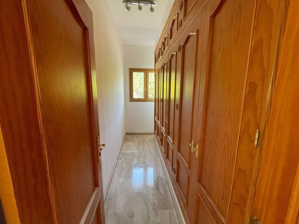 De villa is gebouwd op 463m2 met een perceel van 2197m2. Als u de voordeur binnenkomt, bevinden zich in de oostelijke vleugel 3 tweepersoonsslaapkamers en 2 badkamers, een aparte keuken en een zeer zonnige grote woonkamer. De westelijke vleugel heeft nog een tweepersoonsslaapkamer, een badkamer en extra ruimte voor een tweede lounge of kantoor. Op de eerste verdieping is er een grote slaapkamer, kleedruimte en een grote badkamer die uitkomt op een zeer afgelegen apart terras. De tuinen zijn goed onderhouden met veel fruitbomen, een uitstekend zwembad en parkeergelegenheid voor maximaal 10 auto's, met de toevoeging van een dubbele garage. Het pand is geheel vlak en heeft toegang voor gehandicapten. De keuken is aan renovatie toe. En de woning wordt ongemeubileerd geleverd.