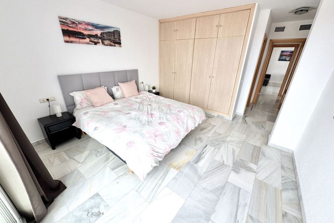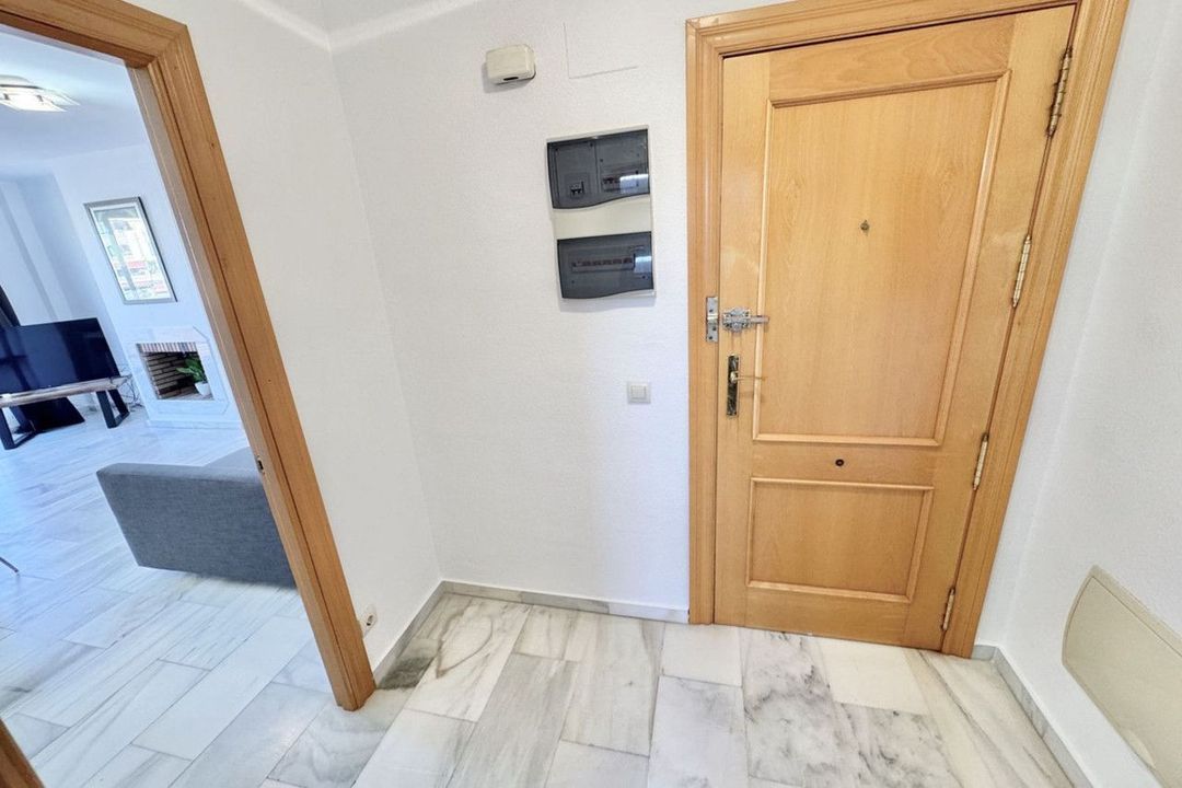 Lift from large underground parking space leading straight to penthouse. Entrance hall leading onto lounge and kitchen. Good size kitchen with window to side and although fitted, it would really benefit from a new luxury fitted kitchen being installed. Lounge with feature fireplace, patio doors with beautiful sea views leading out to enormous wrap around terrace. Internal hallway leading to bedrooms. Large Master bedroom with fitted wardrobes, patio doors onto enormous terrace and beautiful sea views. Also with good size en-suite bathroom with window to side. Second spacious double bedroom with patio doors to terrace and sea views. Second good size family bathroom with window. The property also benefits from marble floors and larger than average underground parking space.