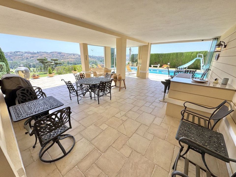 AANBIEDING (enorme prijsverlaging) Spectaculaire villa met 6 slaapkamers, plus een zelfstandig appartement met 2 slaapkamers. Beide bieden een fantastisch uitzicht op de golfbaan, de bergen en de zee. Groot en indrukwekkend huis op een verhoogd perceel van 1703 m² met prachtige luxe woon- en entertainmentruimtes. Prijs verlaagd voor een snelle verkoop. U vindt simpelweg geen indrukwekkendere villa dan deze voor minder dan 2,5 miljoen euro in het westen van de Costa del Sol.