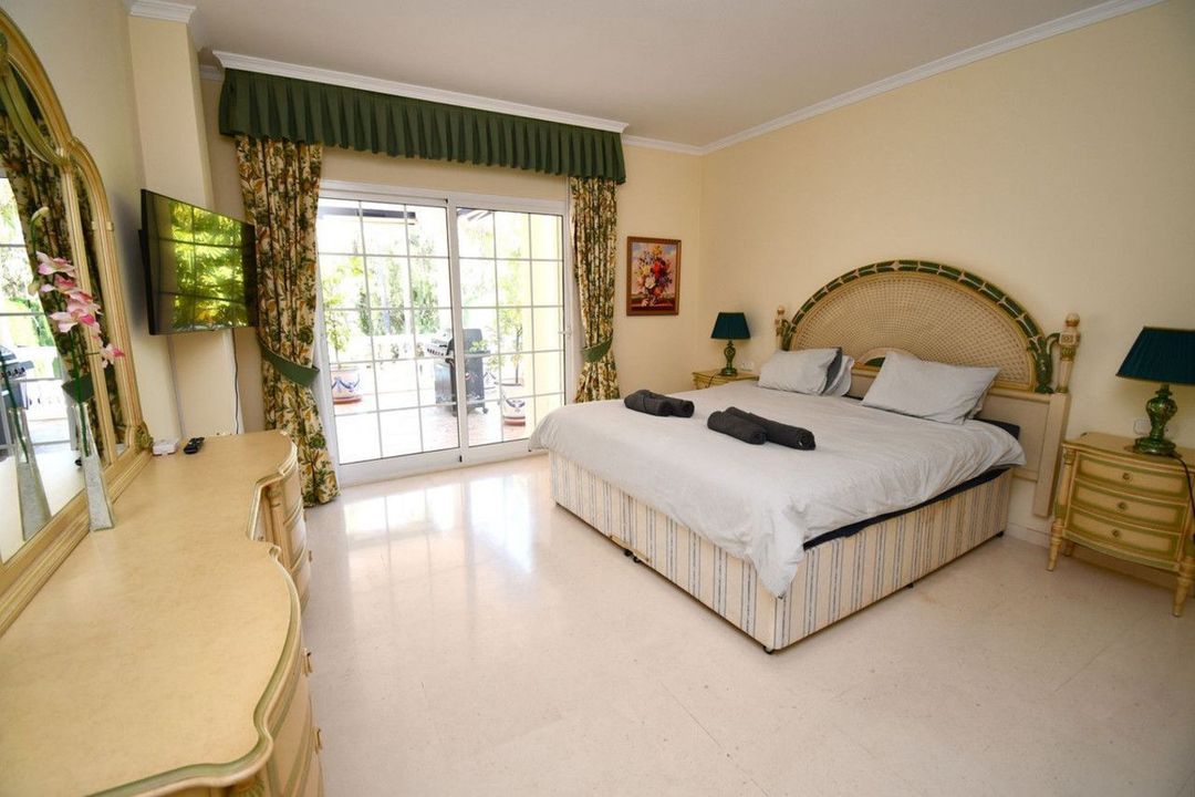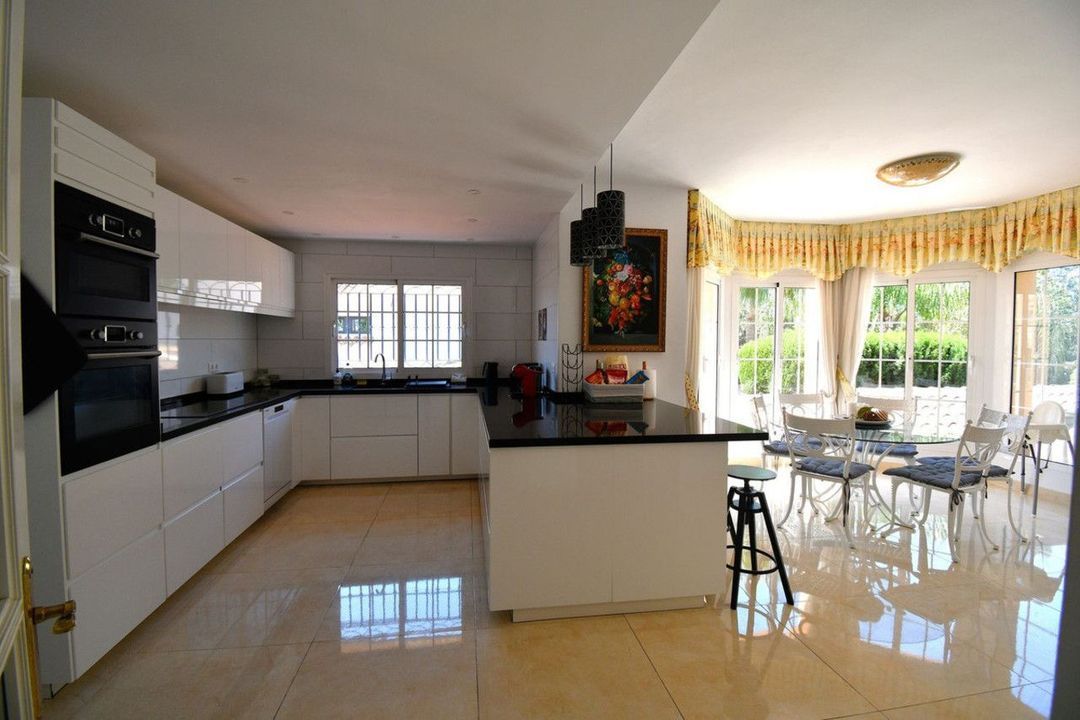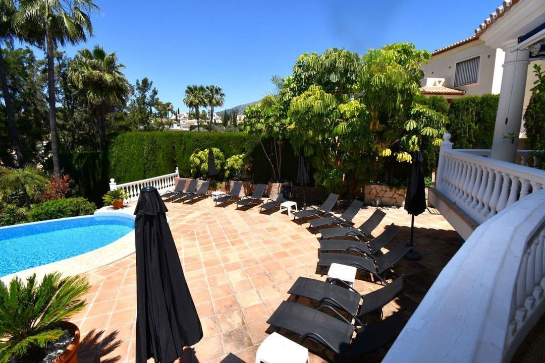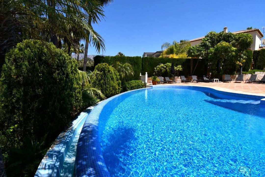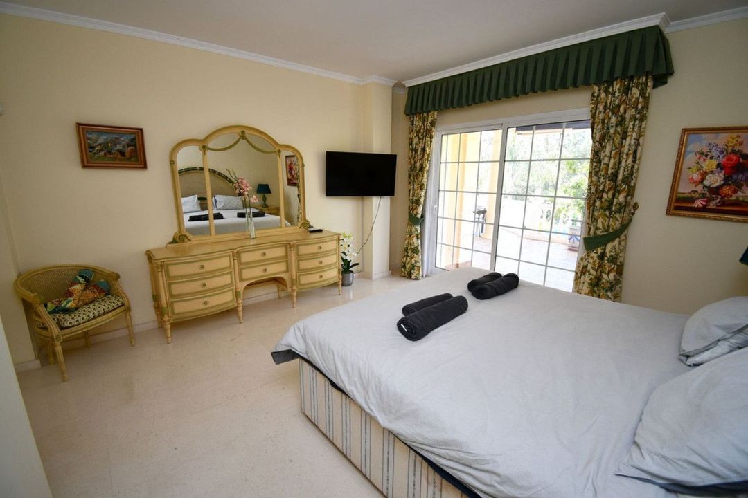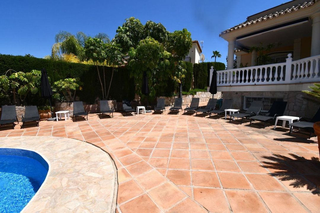 The villa is in the sort after area of Mijas Golf and has views of the beautiful Mijas Mountains. The gardens surround the villa offering plenty of outside space. There is a large terrace overlooking the pool. This terrace offers plenty of seating and a BBQ area. From the terrace, a staircase takes you down to the lower terrace and the pool area. The pool is heated, so ideal for the cooler months. The terrace surrounding the pool is made up of a large sunbathing area, as well as seating areas. Ideal to just relax and unwind. From this level you will find stairs taking you down to the lawned garden. Tropical plants and fruit trees complete this outdoor paradise.