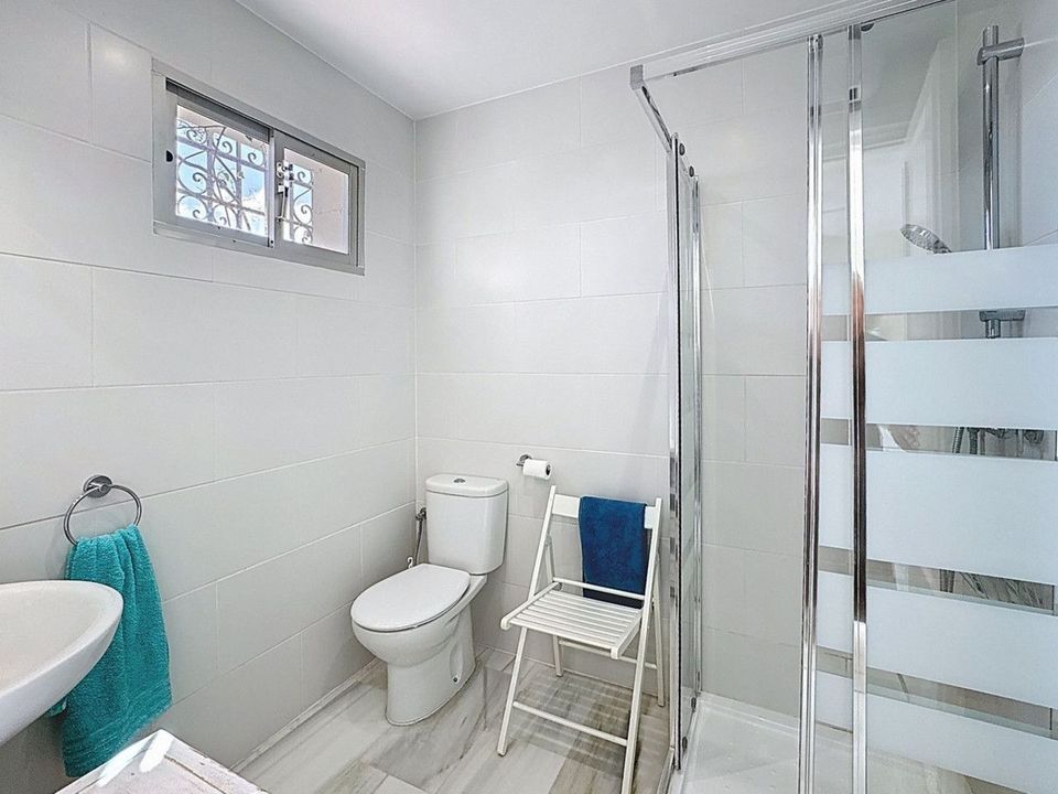 From the living area, a few steps lead up to the master bedroom with an ensuite bathroom and direct access to the terrace, plus another bedroom and a separate bathroom on the same level. A few steps down, you'll find two additional bedrooms sharing a bathroom; one of them opens directly to the terrace and pool area.