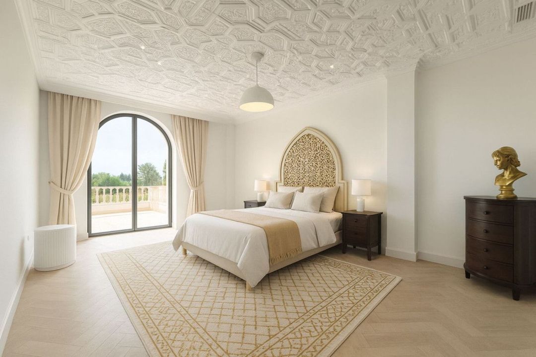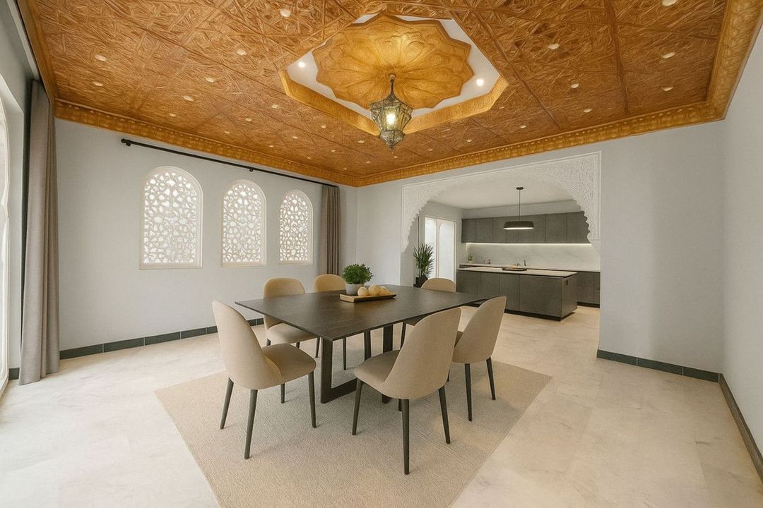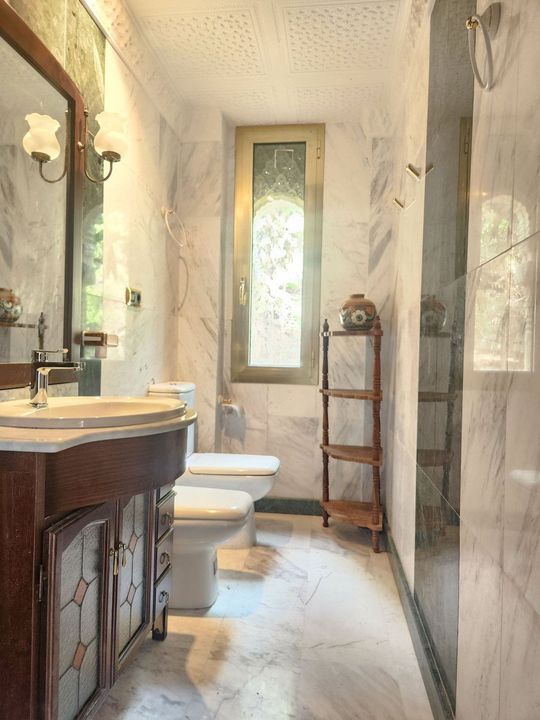 Just 300 meters from the sea, this magnificent villa blends Andalusian Nazarí-modern design, combining luxury and tradition. Its privileged south-facing orientation ensures sunlight throughout the day, illuminating the garden and pool area.