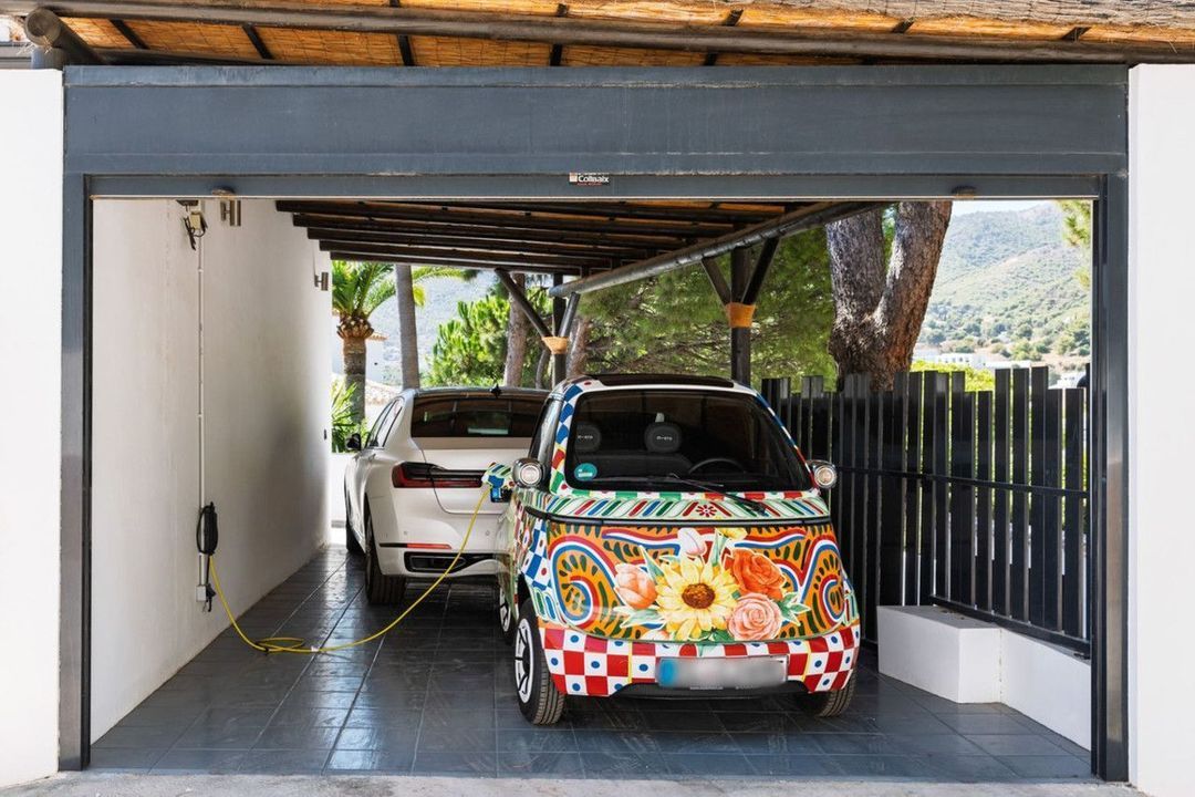 De buitenruimte is een echt privé toevluchtsoord, met een zwembad met zonneweide en hydromassagejet, een barbecuegedeelte ideaal voor buitenbijeenkomsten, en een aangelegde tuin met fruitbomen – alles met vrij uitzicht op zee en bergen.