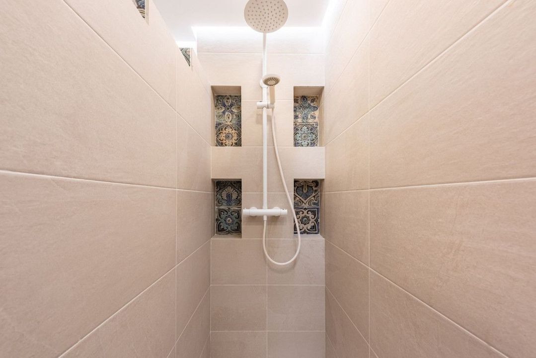 Main terrace of approx. 7 m², east-facing for beautiful morning light and open views of the gardens and the Mediterranean Sea.