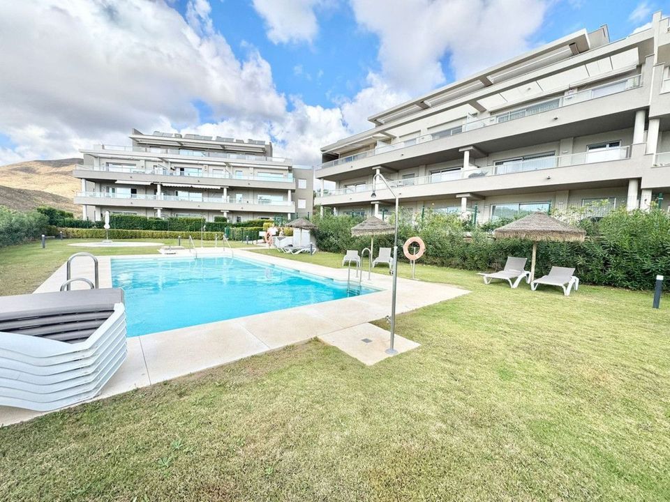 This spacious 3-bedroom, 2-bathroom flat enjoys a prime first-line golf location at La Cala Golf, just a 10-minute drive from the center of La Cala de Mijas. The open-plan living and dining area is filled with natural light, creating an inviting space for relaxation and entertaining. The fully equipped kitchen offers ample storage and workspace, perfect for everyday living.