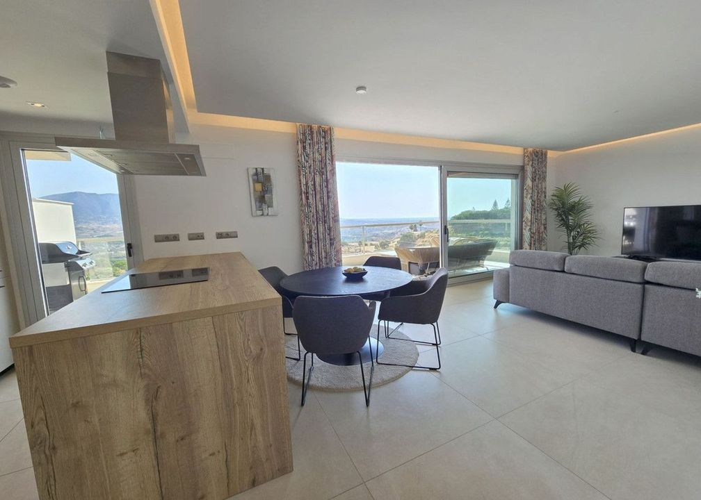 Geniet van de perfecte mix van comfort, stijl en locatie in dit uitzonderlijk lichte hoekappartement op de middelste verdieping met 3 ruime slaapkamers en 2 moderne badkamers. Één van de meest opvallende kenmerken is het ruime terras met een adembenemend panoramisch uitzicht op zowel de kustlijn als de omliggende bergen. Dit onberispelijk gepresenteerde appartement ligt in het hart van La Cala Golf, het meest vooraanstaande golfresort van Spanje - een waar paradijs voor golfliefhebbers. De open woon- en eetkamer baadt in natuurlijk licht dankzij de kamerhoge ramen. Een moderne, volledig ingerichte keuken (met aparte wasruimte) integreert naadloos in de woonkamer en biedt direct toegang tot het terras - perfect om te genieten van het buitenleven of om gasten te ontvangen.