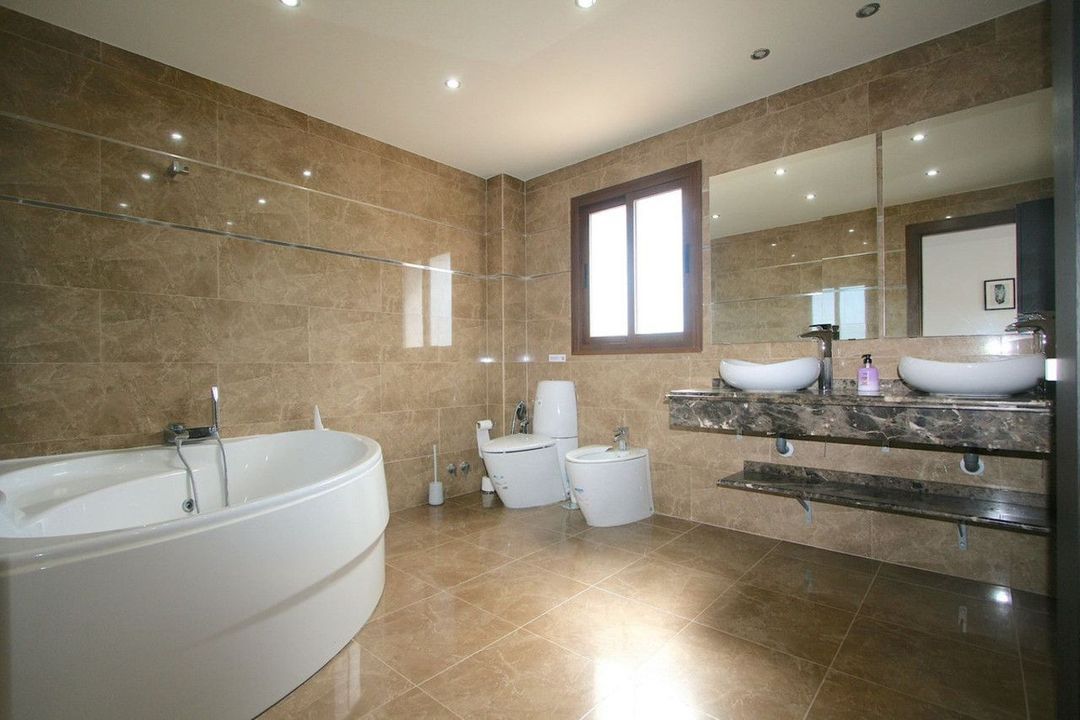 De hoofdvilla bestaat uit vijf ruime slaapkamers en vier badkamers. De lichte hal leidt direct naar de tuin, terwijl aan de andere zijde een grote woonkamer en een volledig uitgeruste keuken met kookeiland te vinden zijn. Deze opent naar de barbecuezone en het zwembad. Op deze verdieping bevindt zich tevens een master bedroom met ensuite badkamer en een tweede ruime slaapkamer met eigen badkamer.