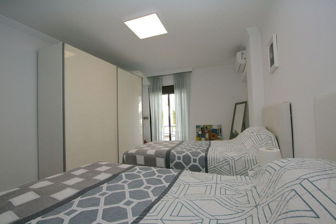 De bovenverdieping heeft een elegante master bedroom met prachtig uitzicht op de bergen en een privébalkon met zicht op Mijas Golf. Twee extra slaapkamers delen een moderne badkamer. Vanuit deze verdieping is er toegang tot een grote terras met panoramisch uitzicht over Fuengirola, de zee en het groene landschap van La Sierrezuela.
