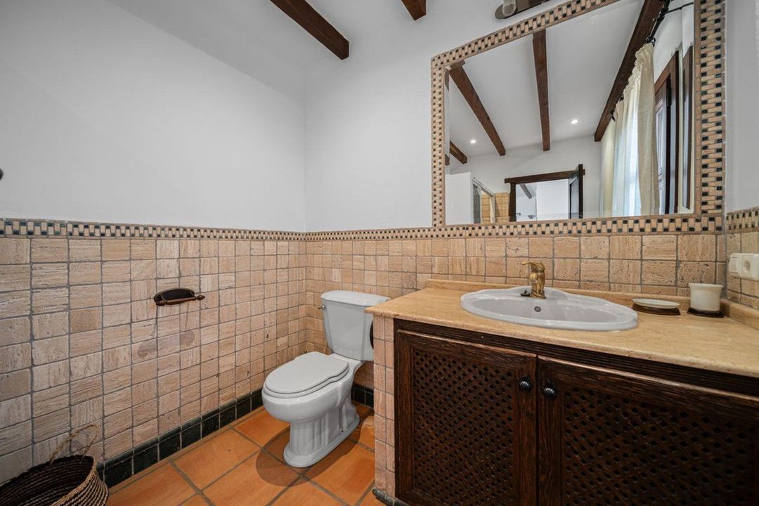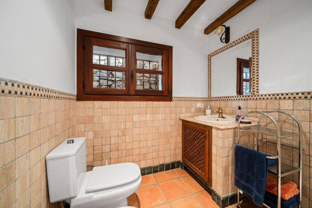 The villa is in excellent condition and captivates with its authentic Andalusian character: beautiful wooden beams, brick and stone details, and an elegant rustic finish that creates a warm and inviting atmosphere.