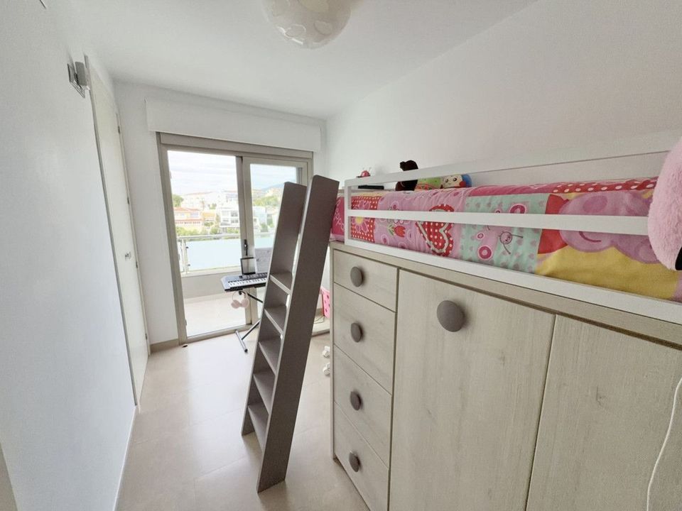 The first floor houses three bedrooms, all very bright and equipped with built-in wardrobes. They share a full bathroom, carefully designed to provide comfort and style. The master bedroom also enjoys access to a private terrace with open views.